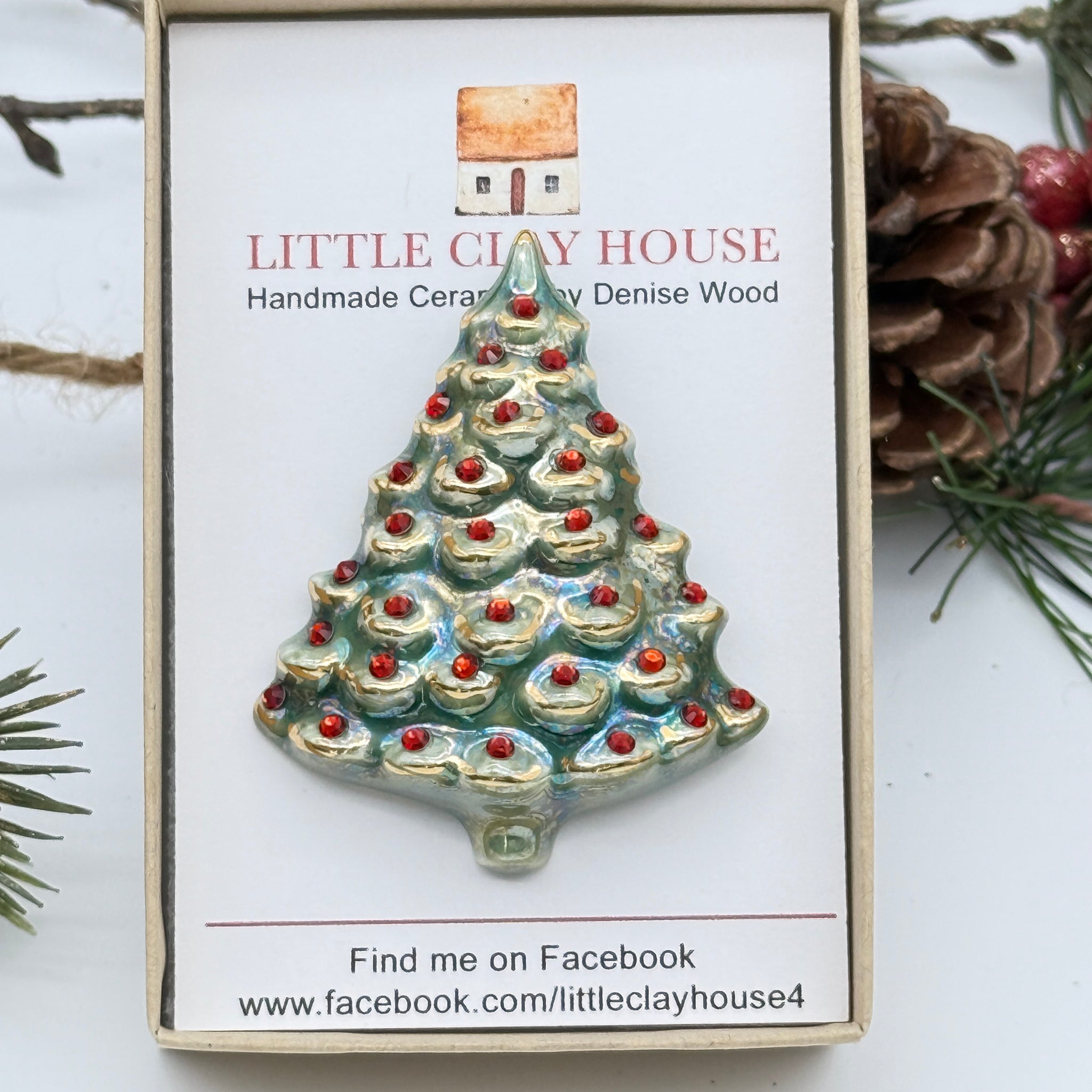 Each one-of-a-kind ceramic brooch is meticulously handmade in my Franklin, Tennessee studio, using a mix of vintage molds and original designs.