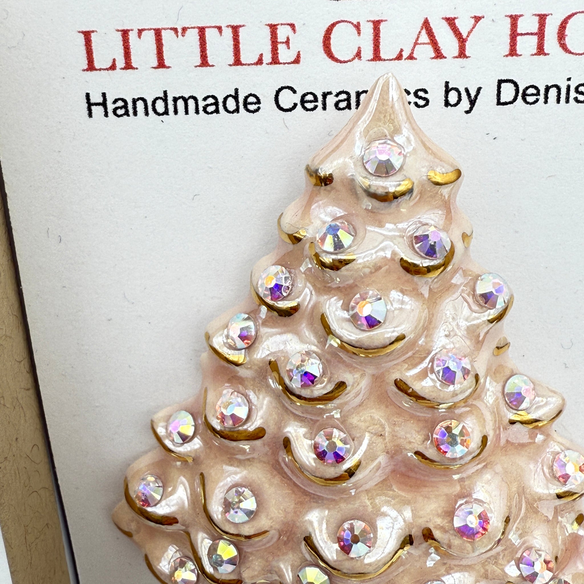 Every piece is finished with a soft Mother of Pearl overglaze and detailed in 22K gold luster, giving it that timeless, heirloom glow. For just the right sparkle, each brooch is hand-set with brilliant Preciosa® Maxima rhinestones.