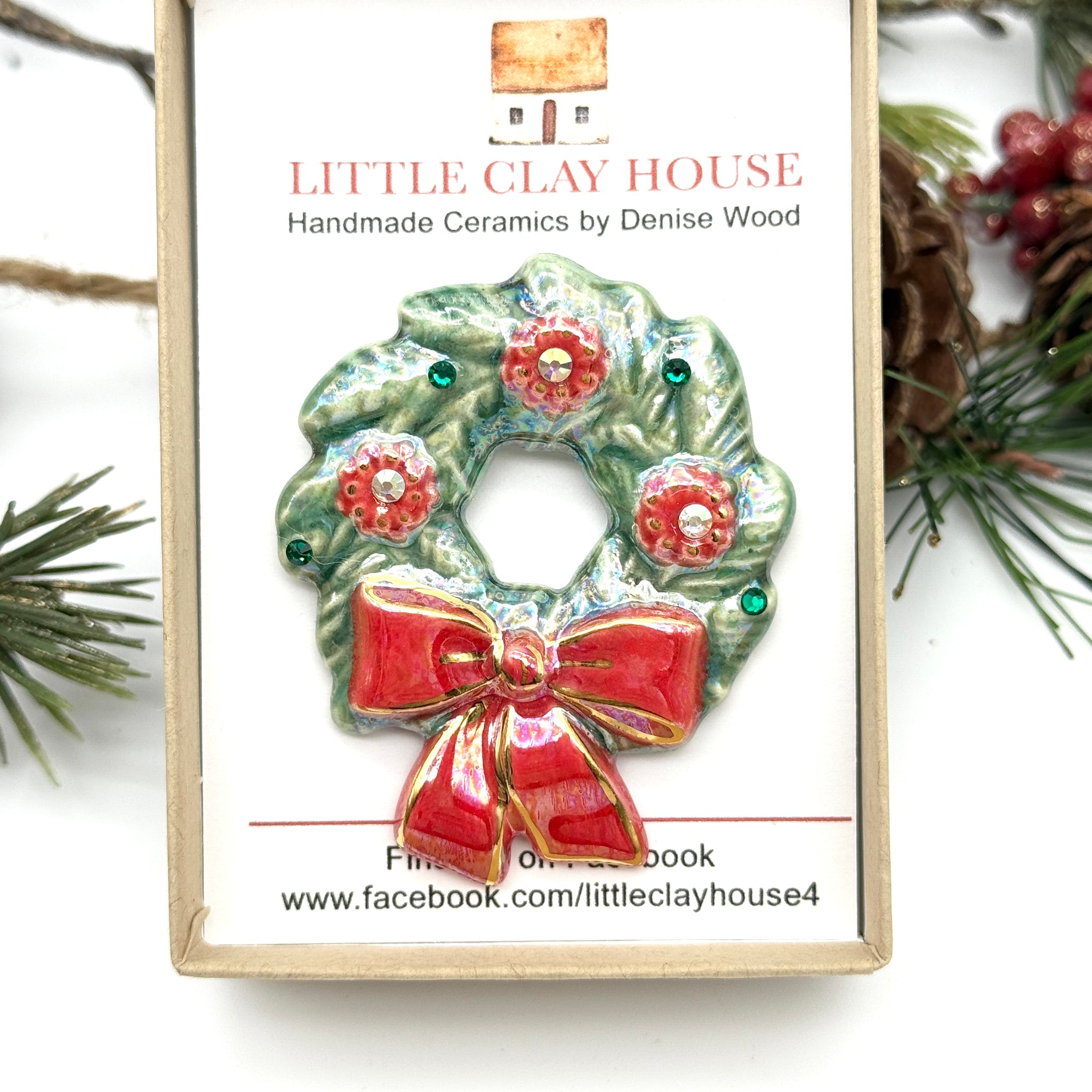 Each one-of-a-kind ceramic brooch is meticulously handmade in my Franklin, Tennessee studio, using a mix of vintage molds and original designs.