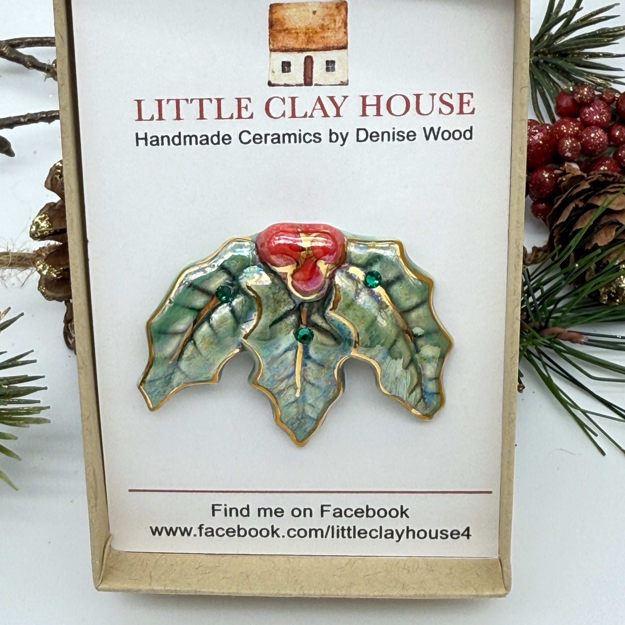 Each one-of-a-kind ceramic brooch is meticulously handmade in my Franklin, Tennessee studio, using a mix of vintage molds and original designs.